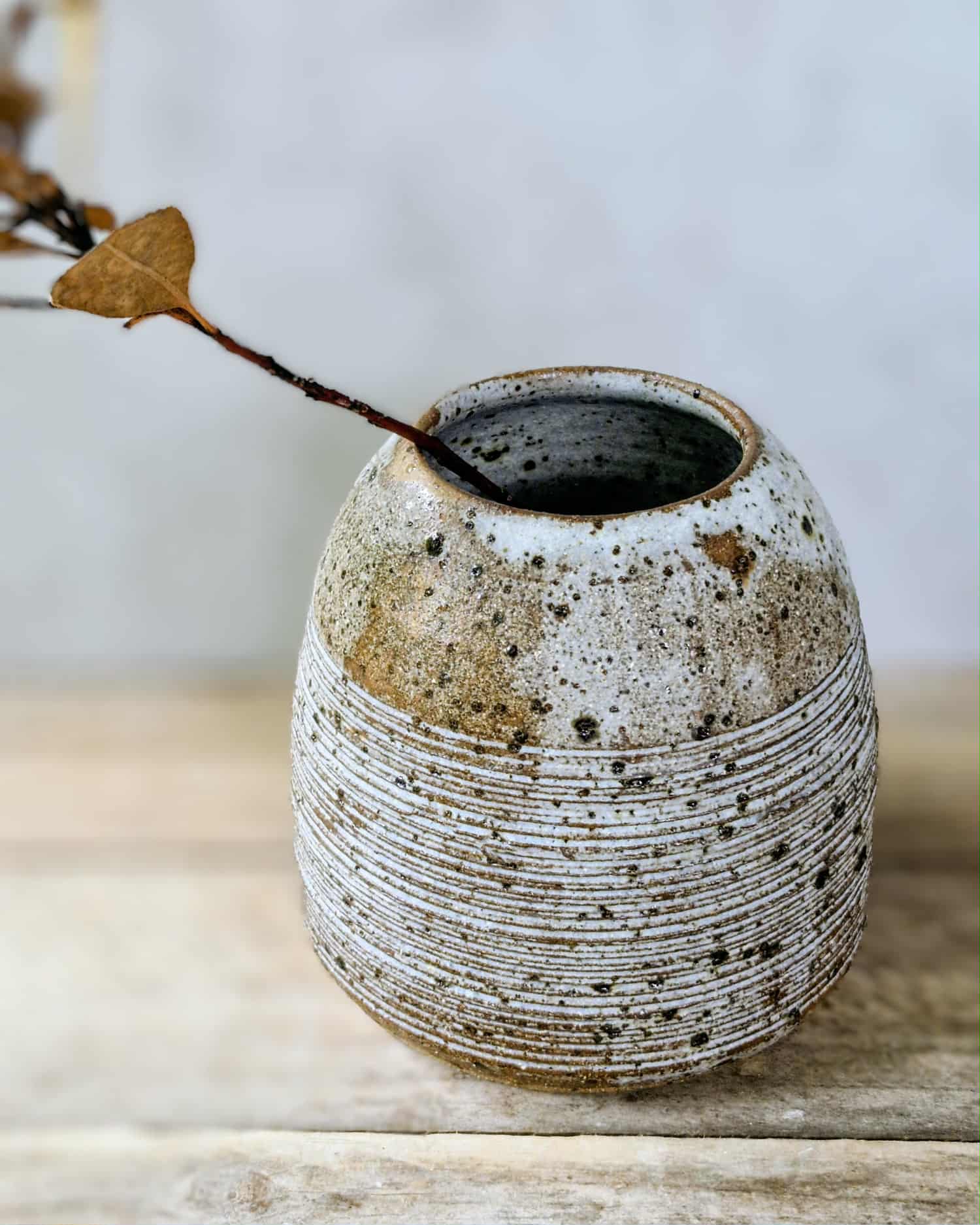 A simplistic shaped vase with some texture to break the surface. Picture a beautiful bunch of natives in this or a stalks of dried foliage.
